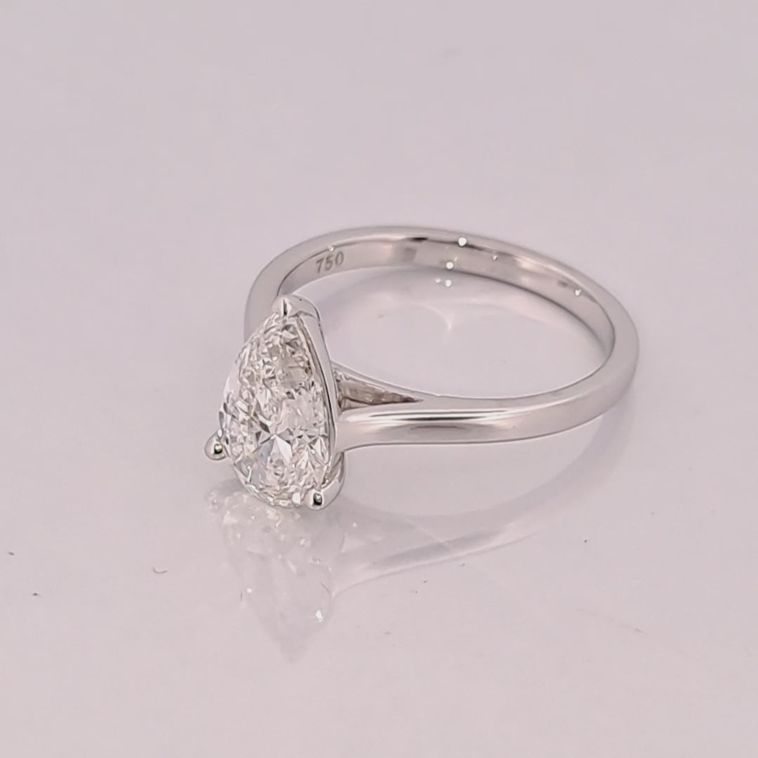 Elegant lab-grown pear-shaped diamond solitaire ring combines modern elegance with sustainability. Featuring a captivating pear-shaped diamond set in a sleek, minimalist band, this ring is a contemporary symbol of love that is both eco-friendly and timeless. Perfect for engagements or special occasions, it's a stunning choice for the conscious consumer.